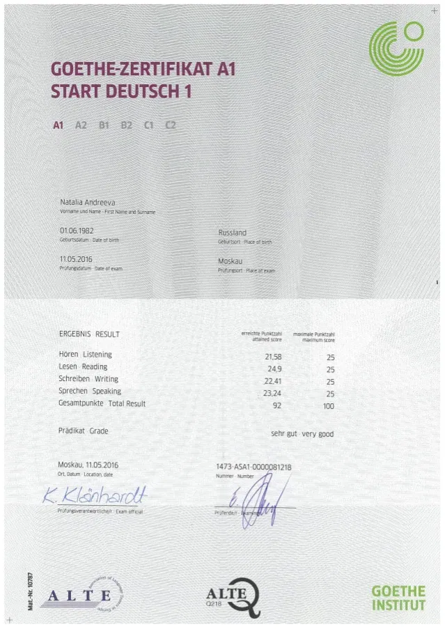 Notre équipe vous conseille sur le test et le niveau requis selon vos objectifs : études, immigration ou carrière. Fini le stress et la préparation interminable : commandez aujourd’hui et recevez votre certificat en un temps record, prêt à être vérifié sur les plateformes officielles. Avancez vers vos projets en Allemagne, Autriche ou Suisse avec sérénité.